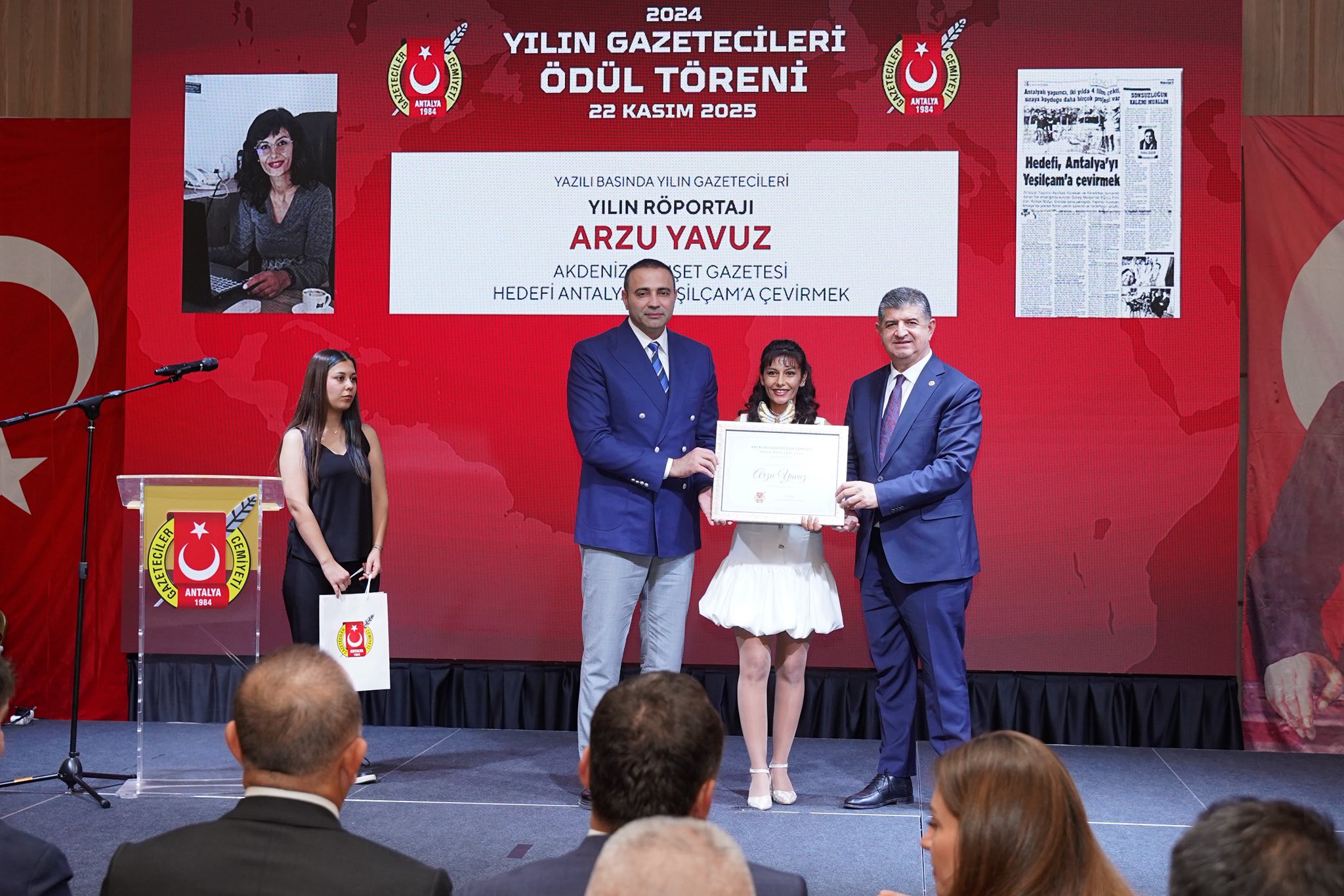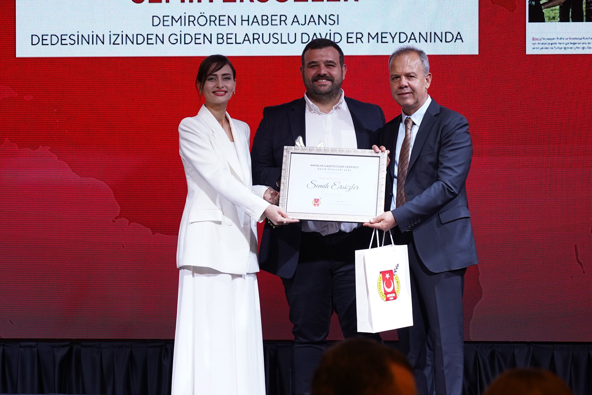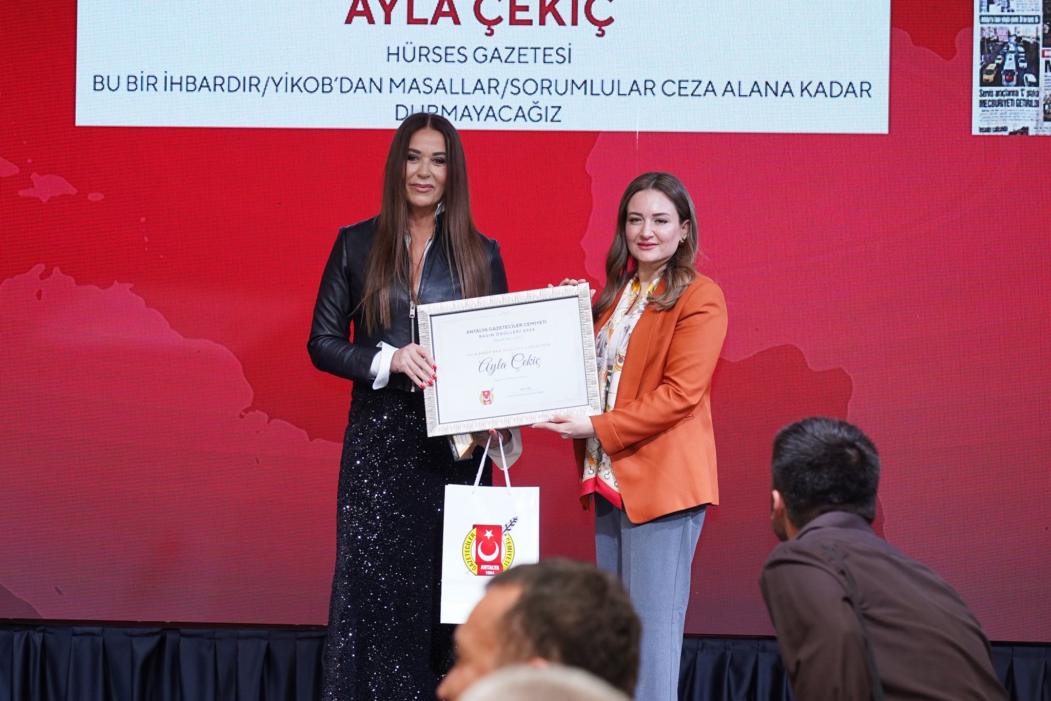 Antalya Büyükşehir Belediye Başkanı Vekili Büşra Özdemir de ödül takdim etmenin yanı sıra demokrasinin en güçlü, önemli sac ayaklarından biri olan gazetecilere duyulan saygı ve dayanışmayı ifade etmek için bir arada olduklarını vurguladı.